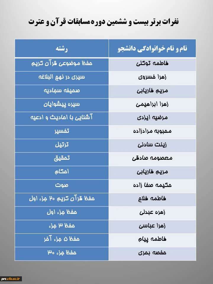 نفرات برتر بیست و ششمین دوره مسابقات قرآن و عترت 2