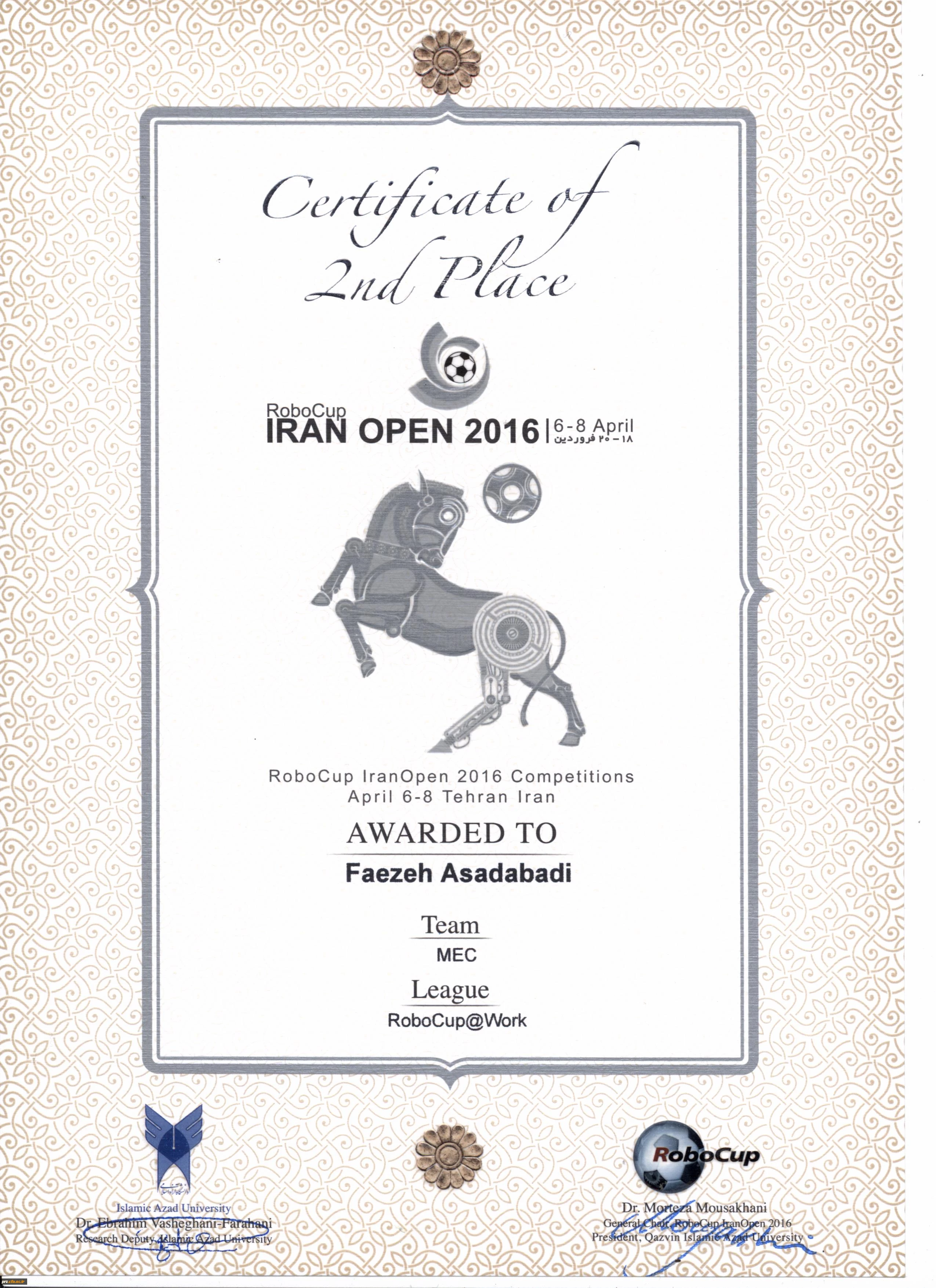 کسب رتبه دوم مسابقات بین المللی ربوکاپ آزاد کشور توسط دانشجو فائزه اسدآبادی و ساناز محمدی 3
