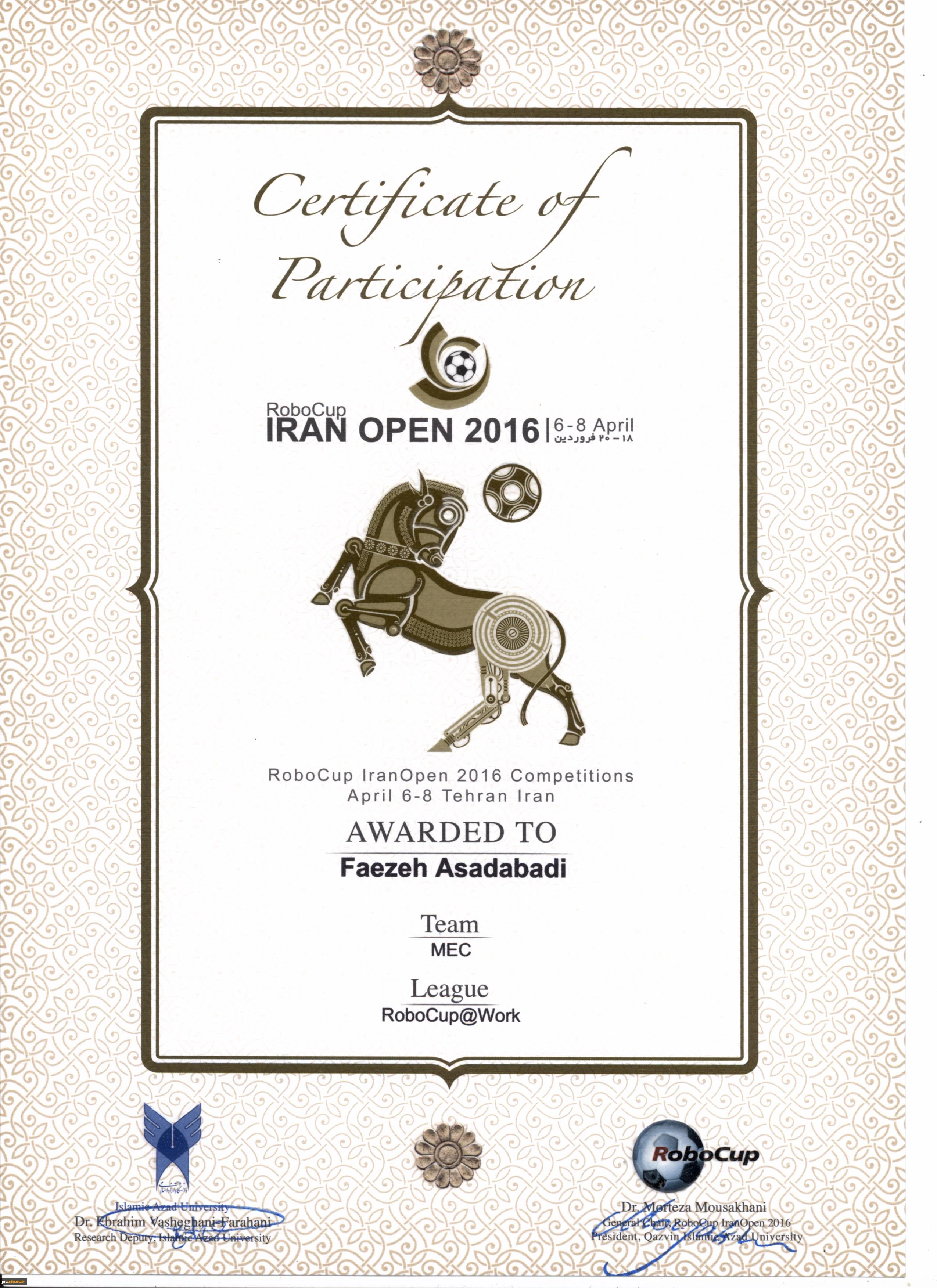 کسب رتبه دوم مسابقات بین المللی ربوکاپ آزاد کشور توسط دانشجو فائزه اسدآبادی و ساناز محمدی 4