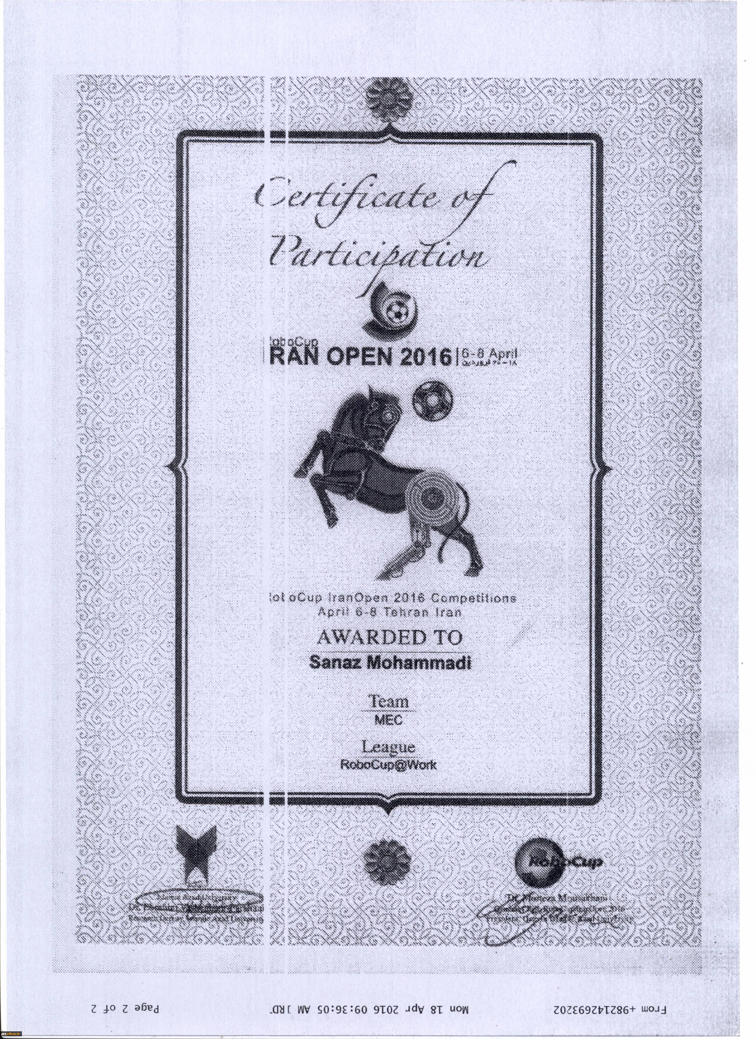 کسب رتبه دوم مسابقات بین المللی ربوکاپ آزاد کشور توسط دانشجو فائزه اسدآبادی و ساناز محمدی 6