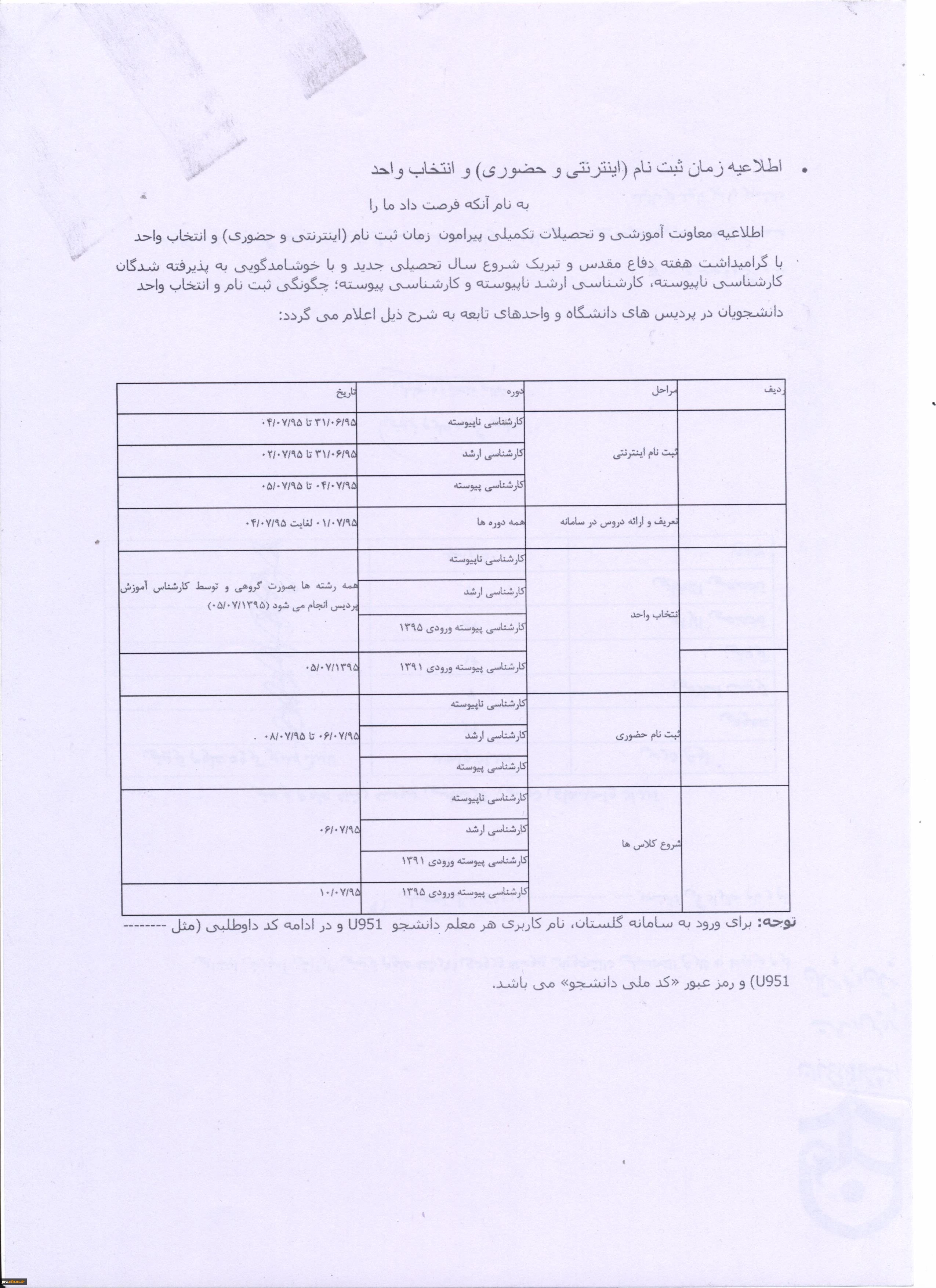 اطلاعیه زمان ثبت نام (اینترنتی وحضوری )