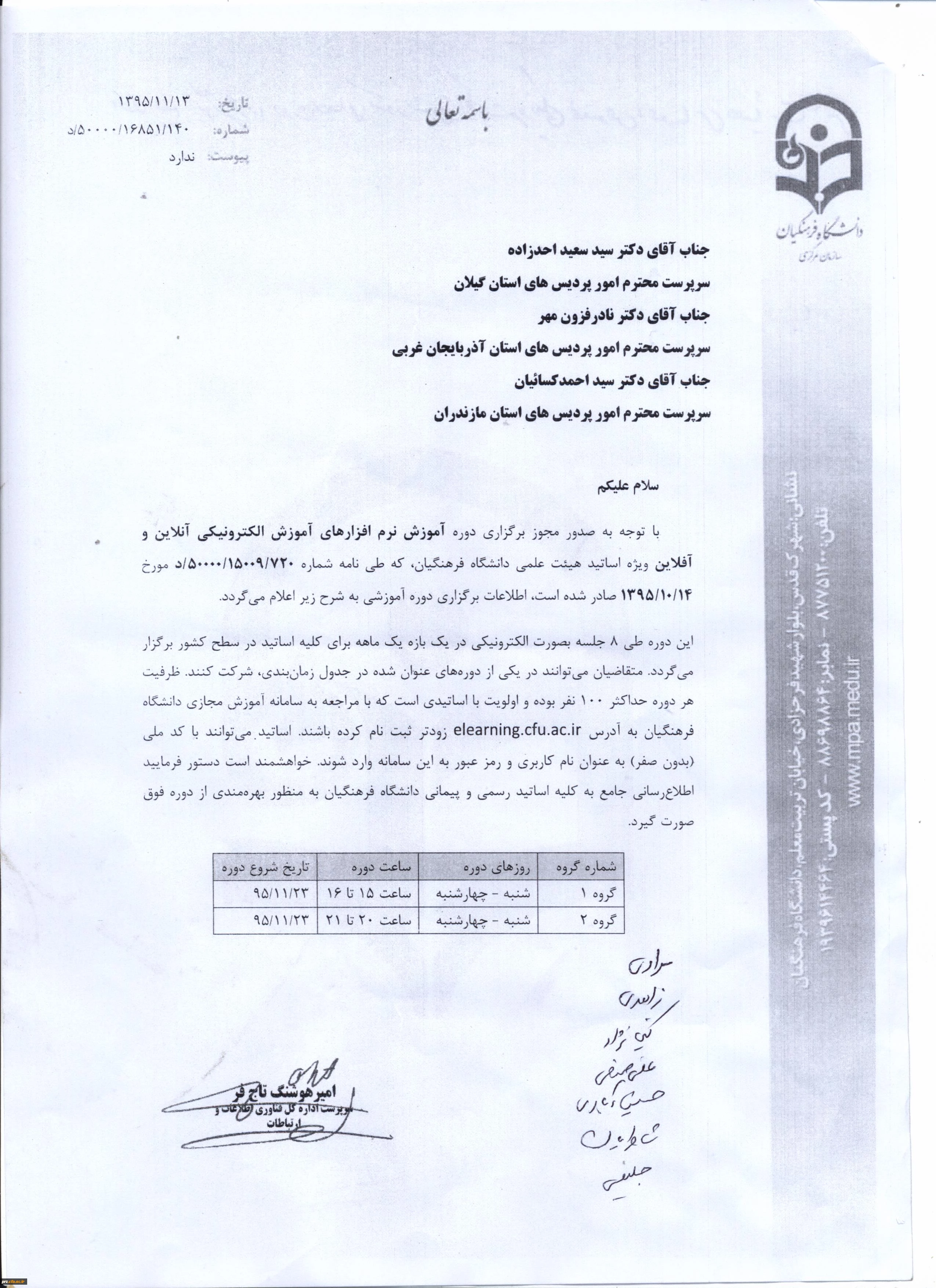 استاد گرامی دوره آموزشی نرم افزارهای آموزشی الکترونیکی ویژه اعضای هیات علمی دانشگاه فرهنگیان