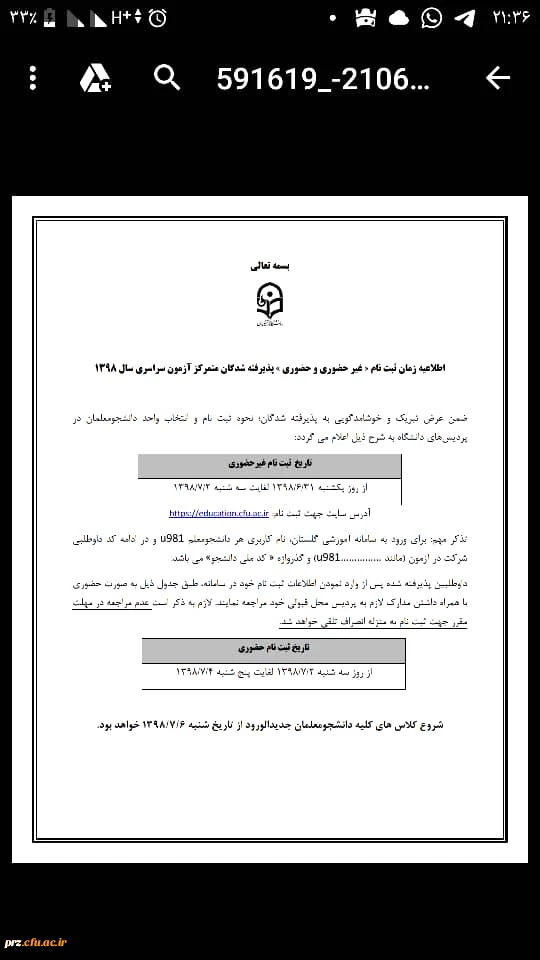 امتیاز دهید : اطلاعیه زمان ثبت نام دانشجویان کارشناسی پیوسته (دانشجویان جدیدالورود ) 2 چهارشنبه 27 شهریور 1398 ساعت 21:51
