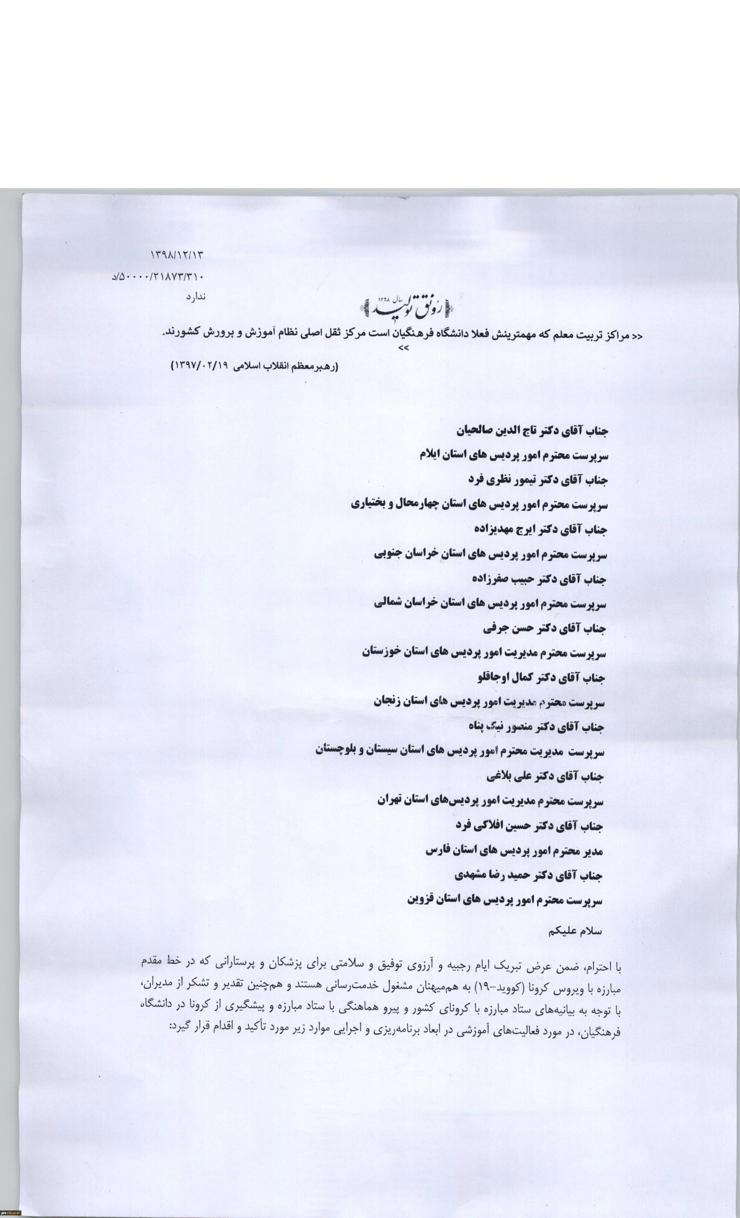 برنامه ریزی سازمان مرکزی درباره ی فعالیتهای آموزشی تعطیلی دانشگاه در رابطه با ویروس کرونا