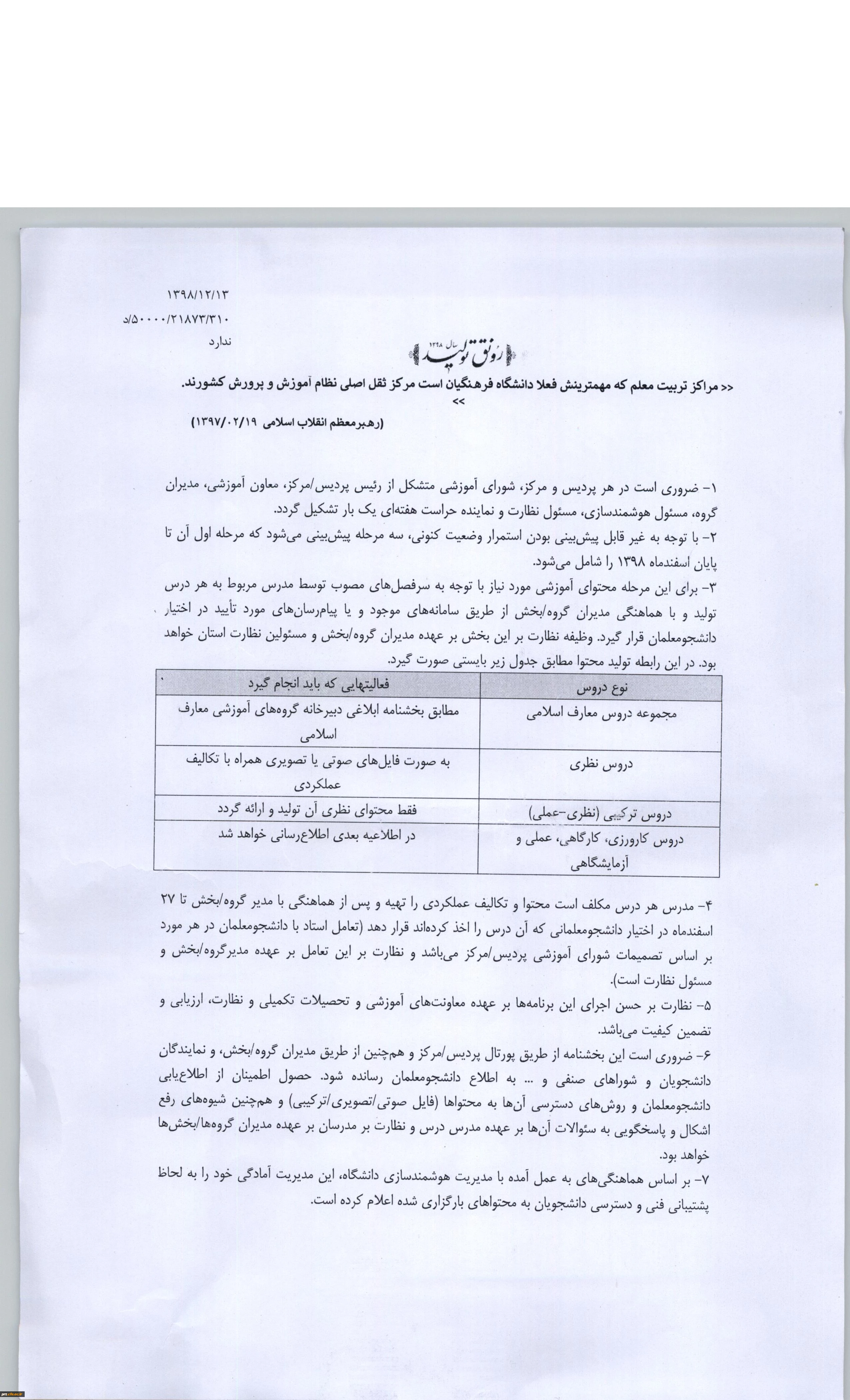 برنامه ریزی سازمان مرکزی درباره ی فعالیتهای آموزشی تعطیلی دانشگاه در رابطه با ویروس کرونا