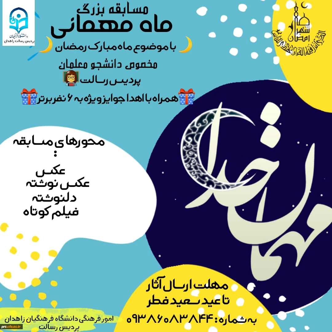 امتیاز دهید : برگزاری مسابقه ماه مهمانی خدا با موضوع ماه مبارک رمضان سهشنبه 16 اردیبهشت 1399 ساعت 1:37