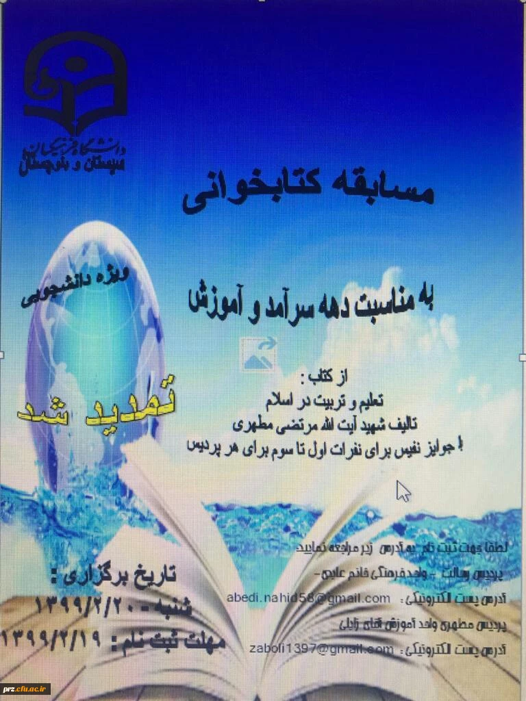 امتیاز دهید : برگزاری مسابقه کتابخوانی به مناسبت دهه سرآمد و هفته آموزش سهشنبه 23 اردیبهشت 1399 ساعت 9:11